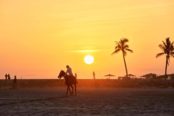 Fanar Hotel features a tranquil spa, kids’ club and diverse dining options, including a Mediterranean restaurant. Relax in elegant rooms with mountain, sea, or pool views, or unwind in a suite with a private jacuzzi. Guests enjoy a private beach, tennis, water activities and access to Oman’s largest aqua park nearby.