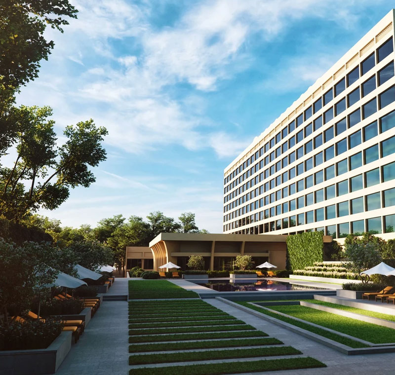 The Oberoi boasts 220 elegantly designed rooms and suites with floor-to-ceiling windows, capturing the beauty of Delhi. Amenities include EV charging stations, two stunning pools, a serene spa and five exquisite dining options, making it ideal for both business and leisure travelers.